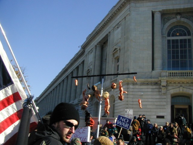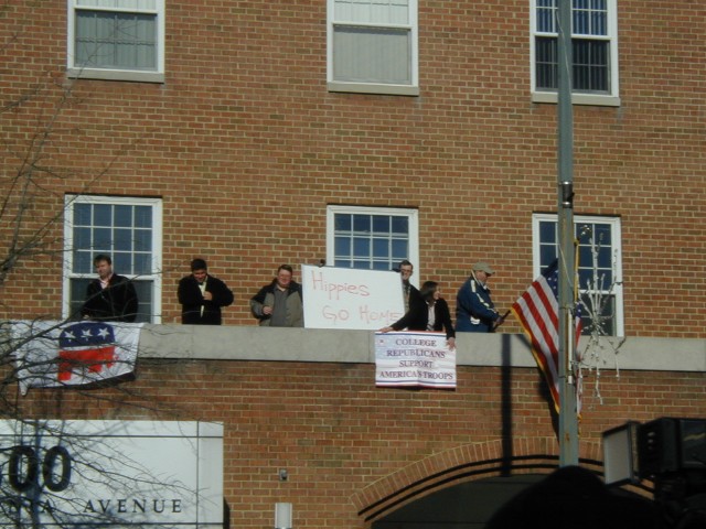 Counter Protest: These counter-protestors had a few kind words for us, and we had a few kind words to offer in return. I'm surprised that all 500,000 of us peace activists didn't just turn around and go home at the sight of this overwhelming support for the war!