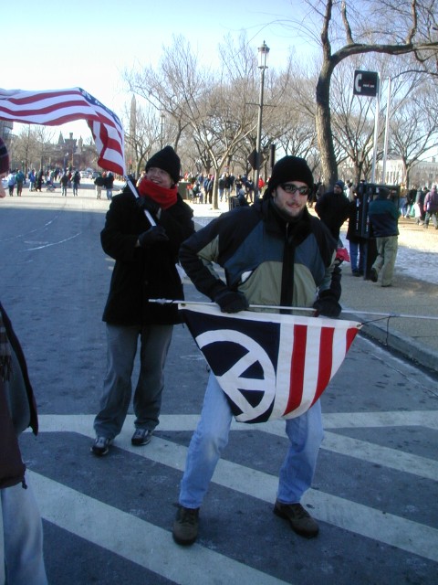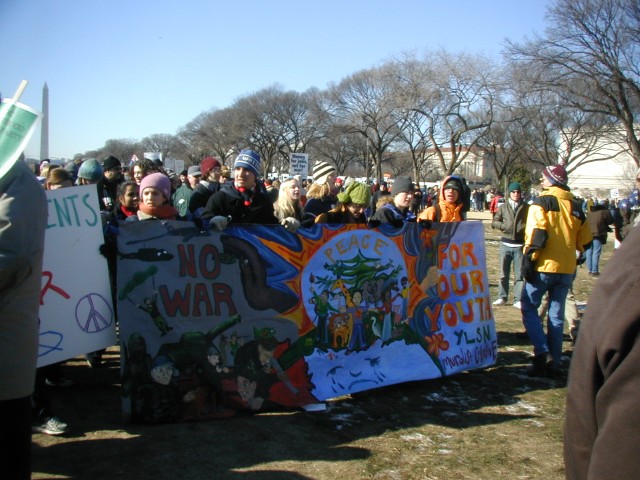On January 17, 2003, 46 peace activists from Carbondale, Illinois chartered a bus out to Washington, D.C., to participate in a mass demonstration against the war in Iraq. On January 18th, 500,000 or so people marched and demonstrated against the war in Iraq. The following day, several hundred marched to the White House to demand weapons inspections at the U.S.'s own Presidential Palace.