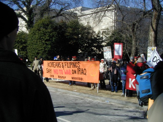 Koreans and Filipinos Unite: This nice banner was made by a contingent of Koreans and Filipinos who are united in their opposition to the war in Iraq. Good to see!