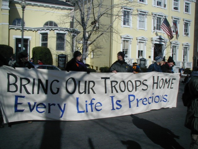 Bring Our Troops Home: Contrary to popular belief, most of today's peace activists do feel the humanity of our soldiers and long to see them brought home safely. This is a part of our motivation for working for peace. Not only does a war of aggression harm the people of the other nation; it also harms our soldiers and all of us at home. War is a double-edged sword; it hurts both ways. I know that I have at least one friend who I love dearly who's in the military and may get called up eventually if this war continues. I really don't want to see that happen. I'll hold up a sign for her at the peace vigils if it happens. I don't want anyone who's at war today to be hurt or killed, no matter what side they may be on. All that I want is peace.